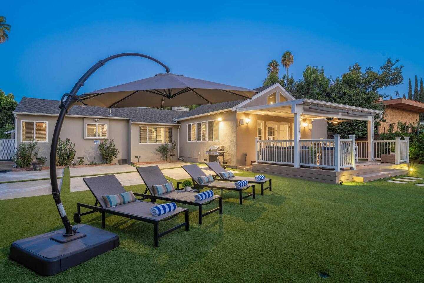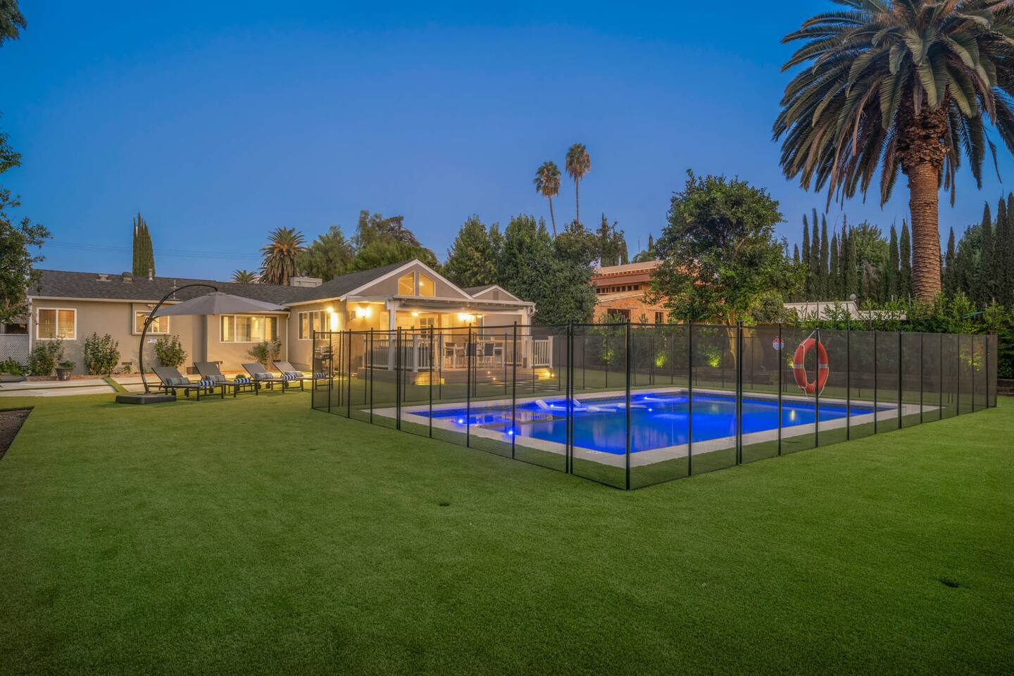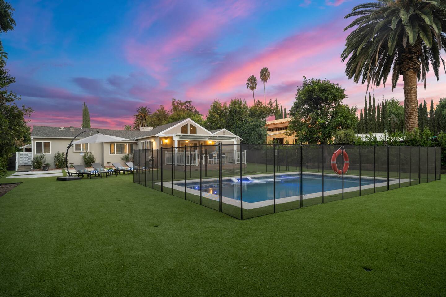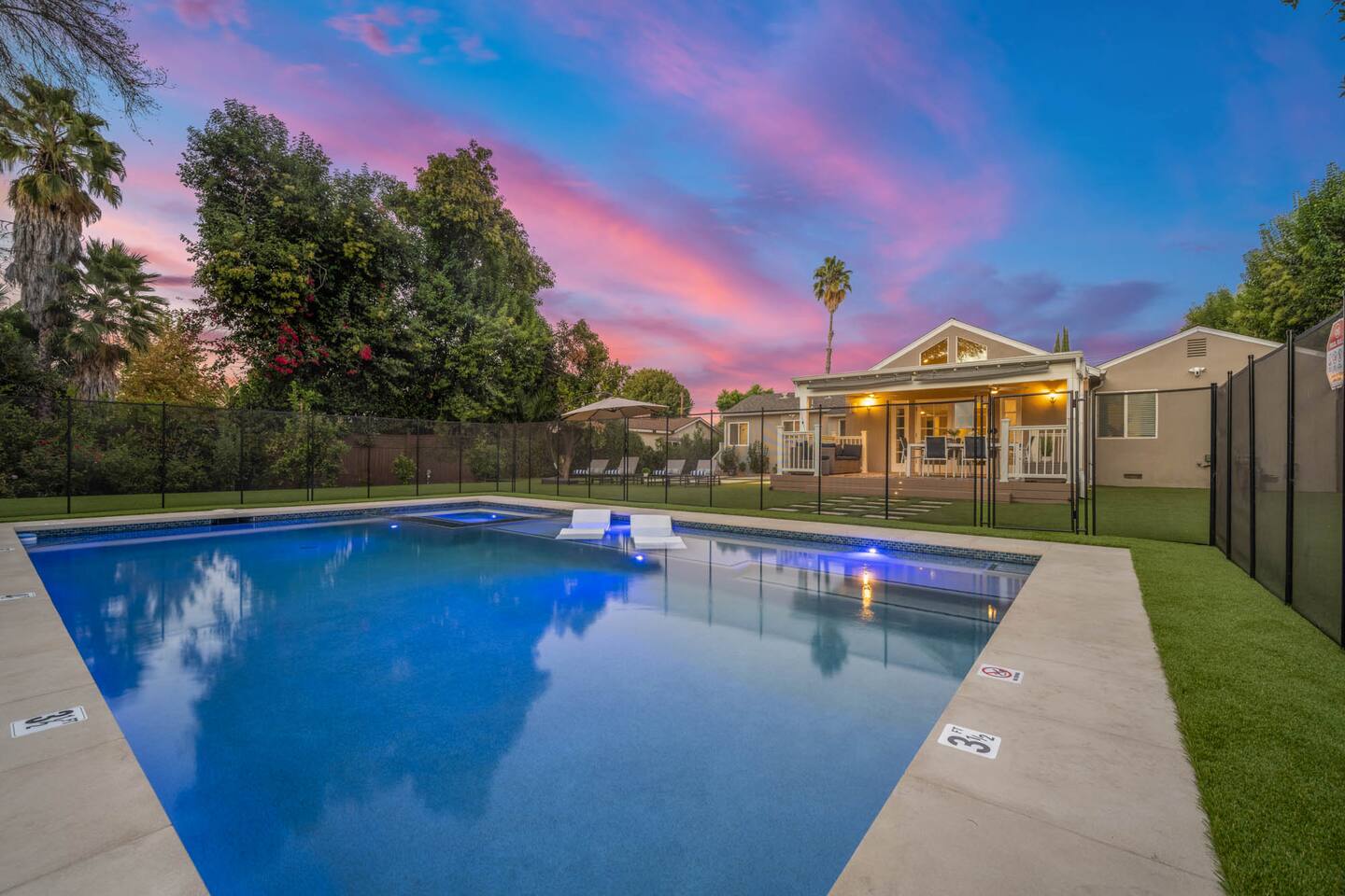 Step into a lush, gated property featuring a brand-new pool and spa, a spacious backyard with mature landscaping, a kids’ playground with a swing set, and a gas BBQ grill - perfect for sunny days and starry nights. Inside, you'll find a thoughtfully designed layout with comfortable bedrooms, cozy common areas, and modern amenities to make your stay feel just like home. 🛏 4 Bedrooms 🛁 2 Bathrooms 🏡 Gated & Private Property 🌴 Huge Backyard with Pool, Spa & Swing Set 🔥 BBQ Grill on Patio 👶 Kid-Friendly Playground 📍 Prime Tarzana Location – Just North of Ventura Blvd You're just minutes from Ventura Boulevard’s top restaurants and boutiques, and a short drive to iconic LA destinations like Universal Studios, Hollywood, Beverly Hills, and the Malibu beaches. Whether you're soaking in the spa, grilling with friends, or letting the kids run free in the yard, this Tarzana retreat offers everything you need for a memorable LA getaway.