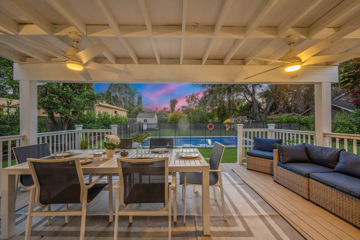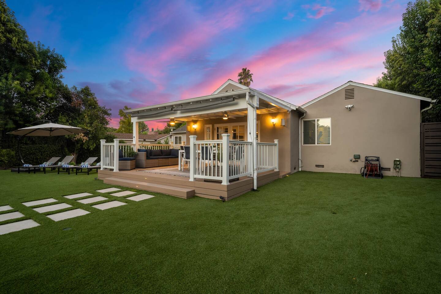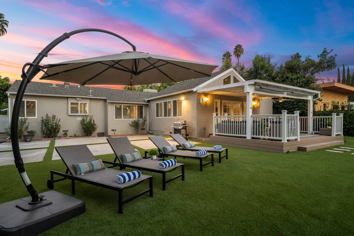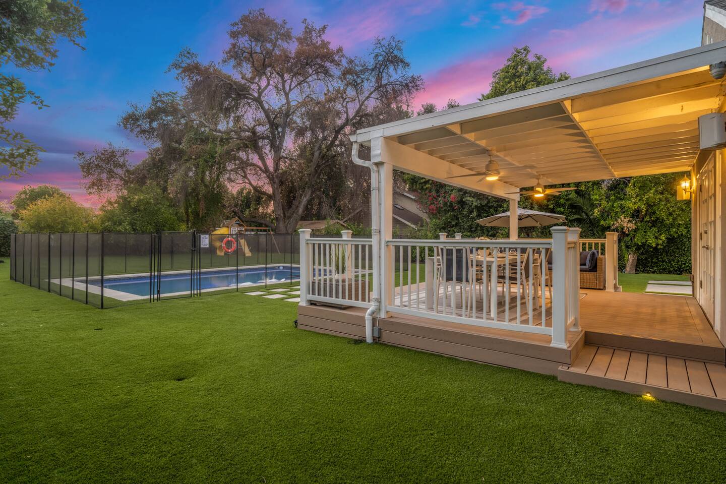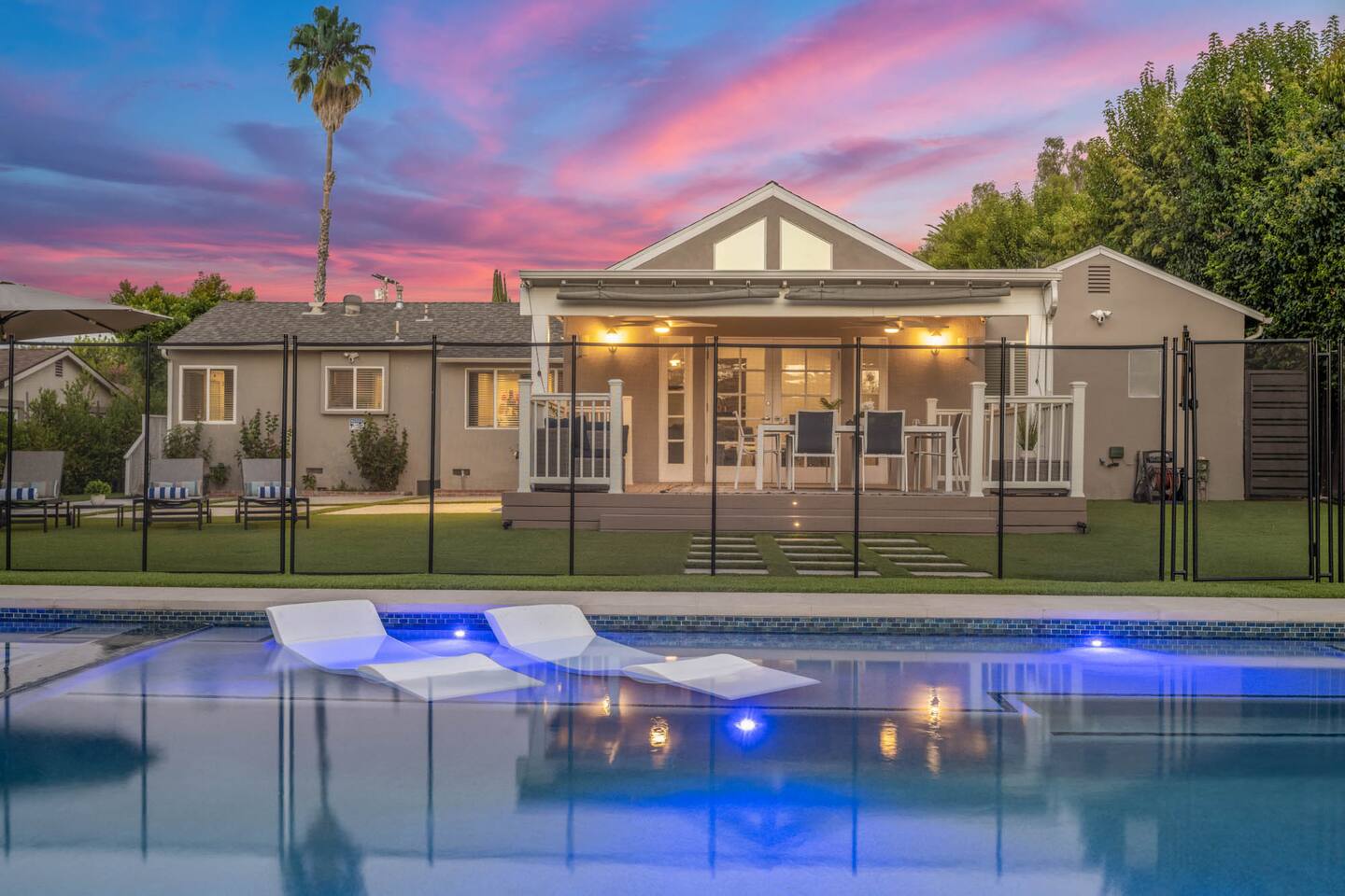 Step into a lush, gated property featuring a brand-new pool and spa, a spacious backyard with mature landscaping, a kids’ playground with a swing set, and a gas BBQ grill - perfect for sunny days and starry nights. Inside, you'll find a thoughtfully designed layout with comfortable bedrooms, cozy common areas, and modern amenities to make your stay feel just like home. 🛏 4 Bedrooms 🛁 2 Bathrooms 🏡 Gated & Private Property 🌴 Huge Backyard with Pool, Spa & Swing Set 🔥 BBQ Grill on Patio 👶 Kid-Friendly Playground 📍 Prime Tarzana Location – Just North of Ventura Blvd You're just minutes from Ventura Boulevard’s top restaurants and boutiques, and a short drive to iconic LA destinations like Universal Studios, Hollywood, Beverly Hills, and the Malibu beaches. Whether you're soaking in the spa, grilling with friends, or letting the kids run free in the yard, this Tarzana retreat offers everything you need for a memorable LA getaway.