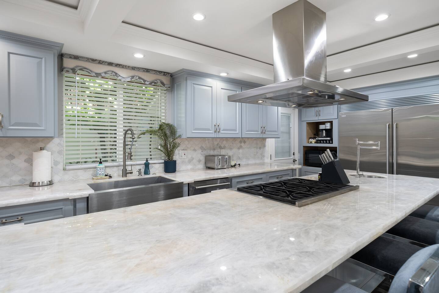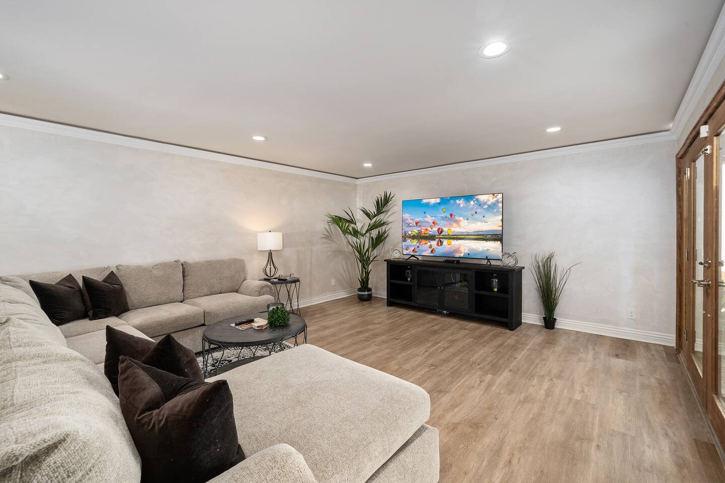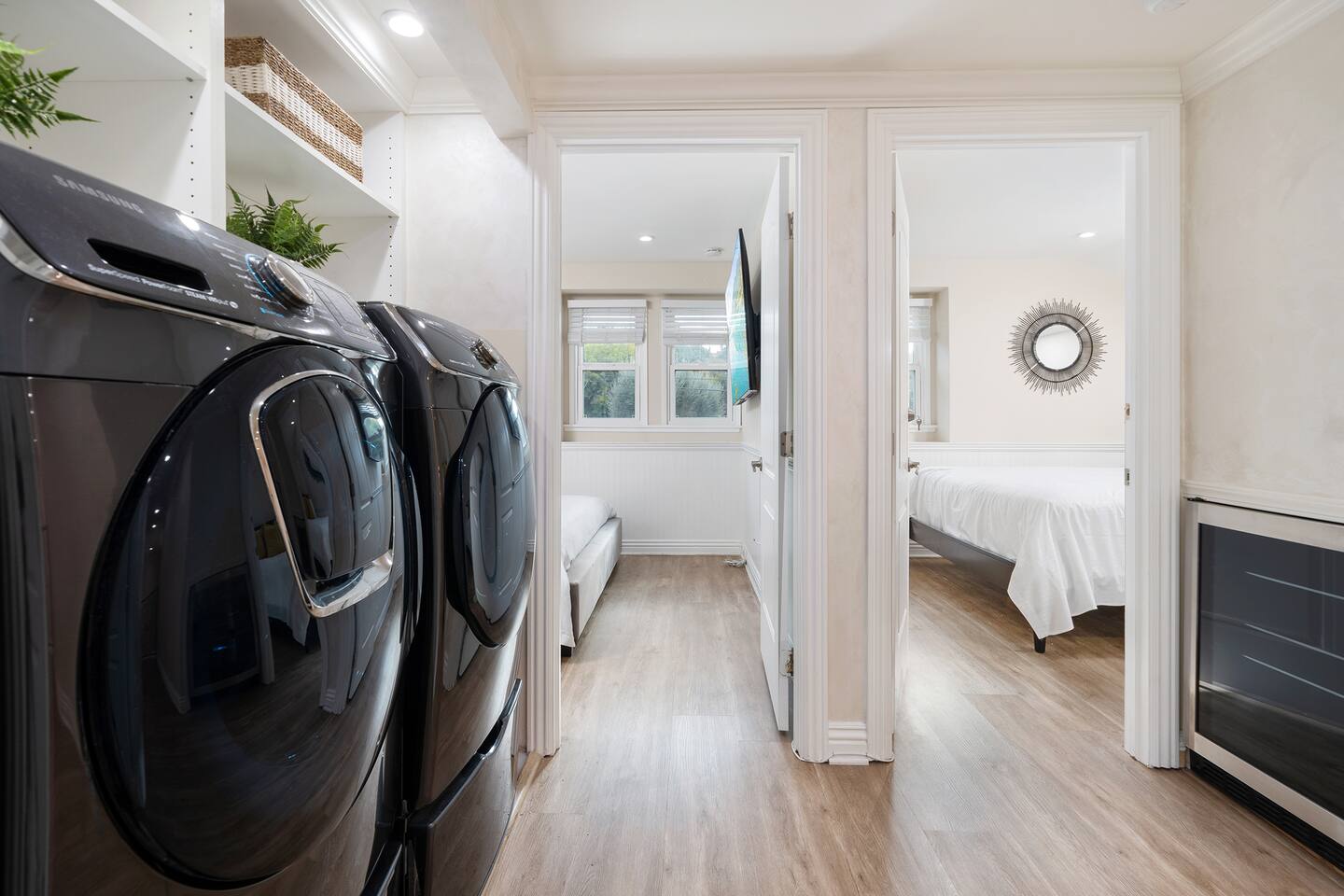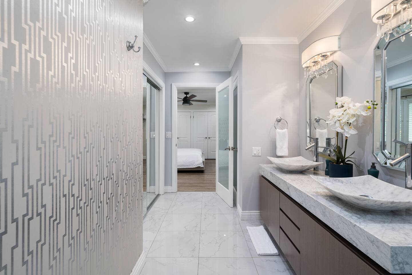 Family friendly spacious 5 bed/3 bath house has everything you need: fully equipped gourmet kitchen, brilliantly designed with quality in mind highlighted by a large center island, mini fridge, custom cut natural stone counters throughout, ample cabinet space and stainless-steel appliances. The master bedroom has a spacious en-suite bathroom with dual vanities, and a large shower. 2 car garage + large driveway which can accommodate up to 3 cars, plus plenty of parking on the street. Updated renovated bedrooms rooms are equipped with comfortable beds and cozy mattresses. Welcoming both business & leisure travelers from all around the world.