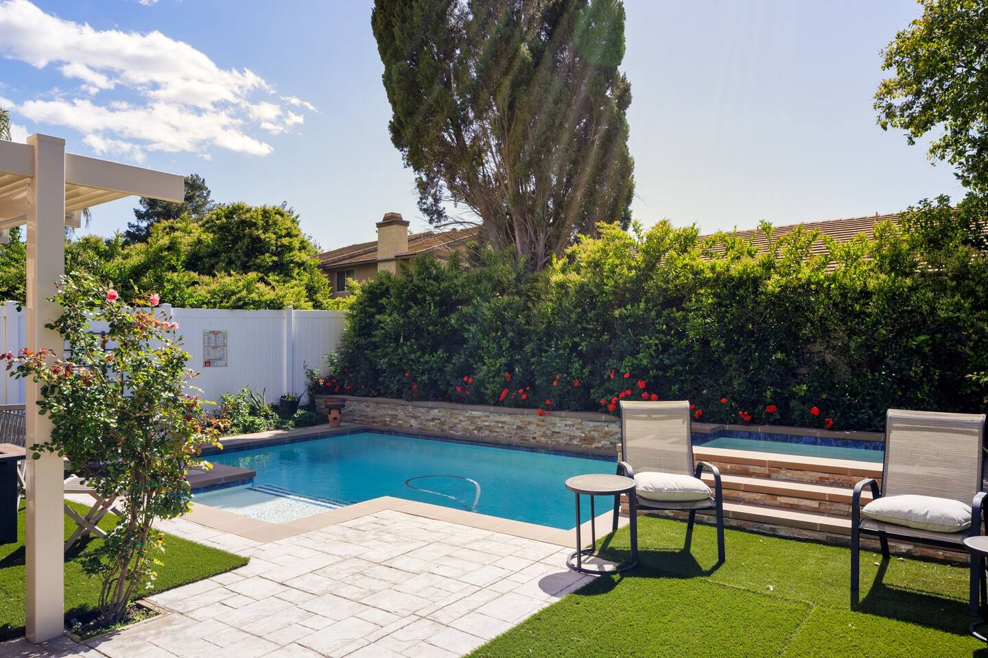 Welcome to our vibrant Valencia getaway! Nestled in the heart of this charming city, our 3 bedroom, 2.5 baths Airbnb promises a stay filled with color, comfort, and convenience. The real highlight of our Airbnb is the luxurious private pool and spa. Surrounded by lush greenery and bathed in sunlight, this newer addition is the perfect place to unwind after a day of exploring Valencia. Dive into the refreshing waters of the pool, or soak your cares away in the bubbling spa - the choice is yours.