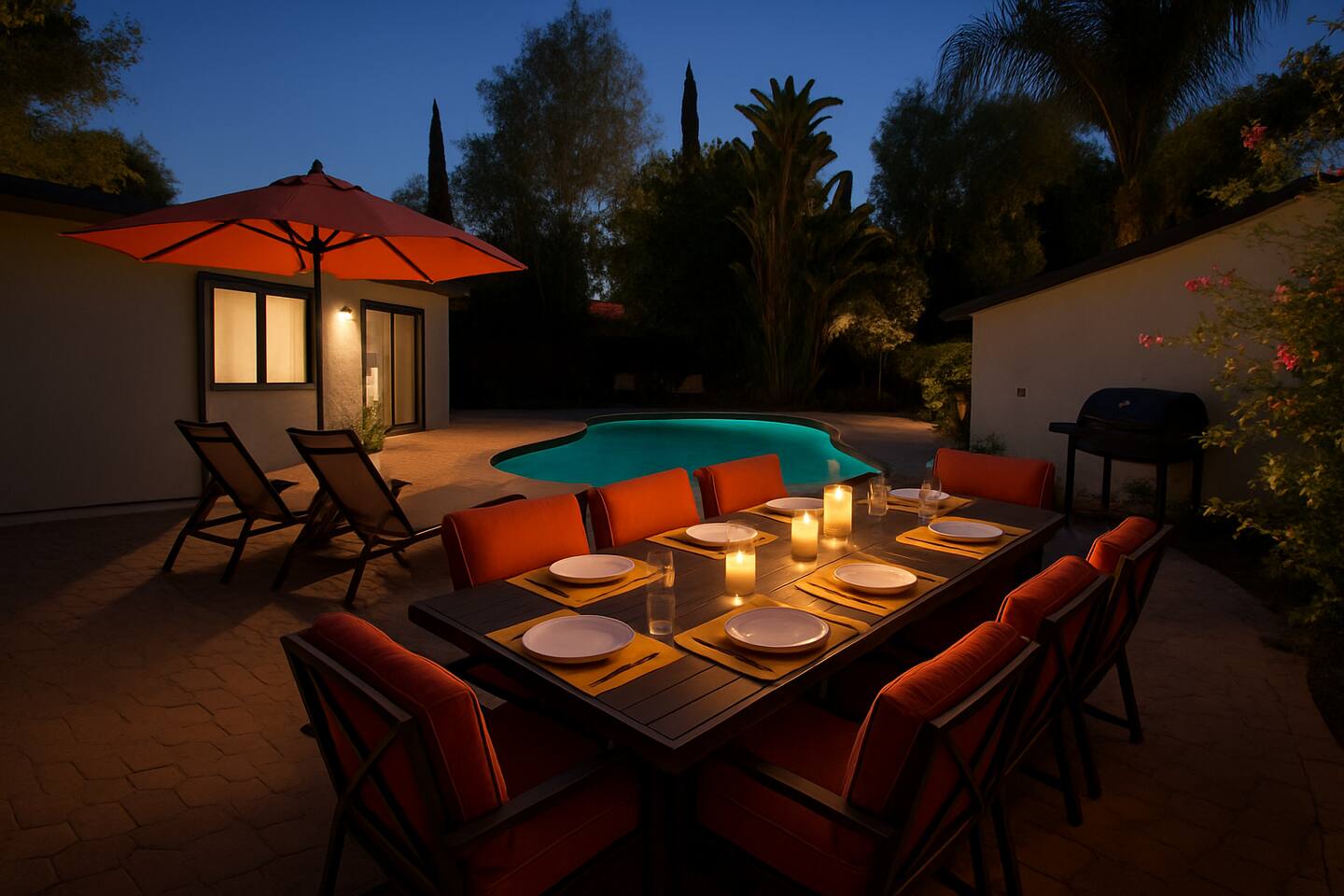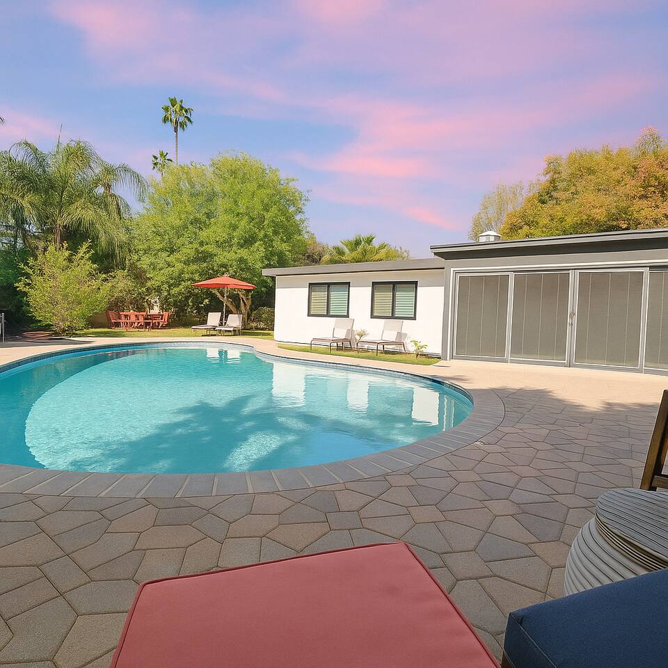 Enjoy total privacy, contemporary elegance, and a prime location close to everything. Whether you’re seeking a peaceful getaway or a stylish space to host, this home has it all. Dog-Friendly Backyard with Real Grass! 🐕 Living Spaces Step inside to an expansive open-concept living area with soaring ceilings and large windows that fill the space with natural light. The cozy living room features plush seating, perfect for relaxing after a day of adventure or gathering with friends and family for movie night. Stylish décor blends contemporary elegance with warm touches, creating an inviting and comfortable ambiance throughout. Gourmet Kitchen The heart of the home is a chef’s dream kitchen, equipped with state-of-the-art appliances, ample counter space, and all the cookware you need. Whether it’s a quick breakfast or a lavish dinner, you’ll find everything at your fingertips. Enjoy meals at the spacious dining table or take it outside for al fresco dining under the stars. Bedrooms & Bathrooms This vacation rental features four beautifully appointed bedrooms designed for restful nights and rejuvenating mornings. The master suite offers a private en-suite bathroom - ideal for unwinding after a long day. The additional three bedrooms provide plenty of space for guests to relax, and with two full bathrooms, mornings are stress-free. The sunroom is perfect for soaking up natural light and relaxing in comfort. Outdoor Paradise Step into your private backyard oasis! The sparkling pool is perfect for cooling off on sunny days, while the surrounding patio features loungers and a dining area for outdoor entertaining. Fire up the grill for a summer barbecue or enjoy evening cocktails in the serene Woodland Hills setting. Lush landscaping provides privacy and enhances the outdoor experience, making this space perfect for breakfast by the pool or evening gatherings under twinkling lights. Location Highlights Located in the desirable Woodland Hills neighborhood, this home offers easy access to parks, shopping, restaurants, and hiking trails. A short drive will take you to some of California’s beautiful beaches, and convenient access to major highways makes exploring Southern California a breeze. Whether it’s a family vacation or a getaway with friends, this Woodland Hills home promises comfort, style, and unforgettable memories. Book now to secure your private slice of paradise!