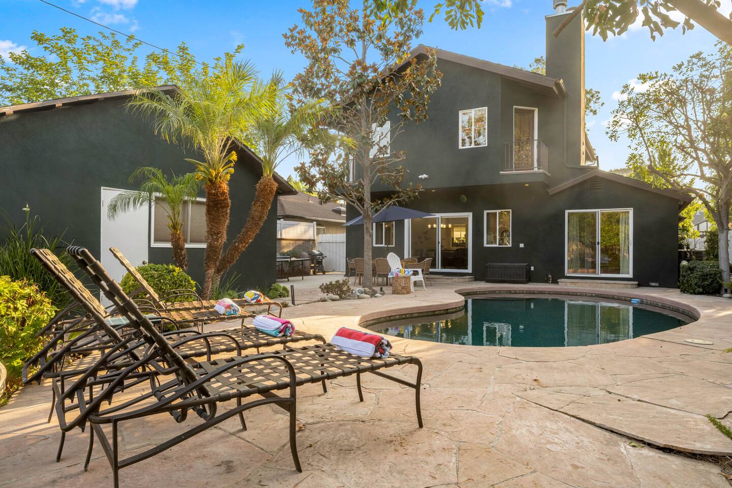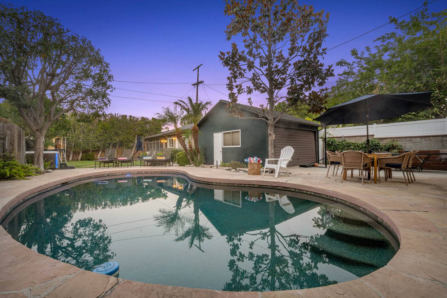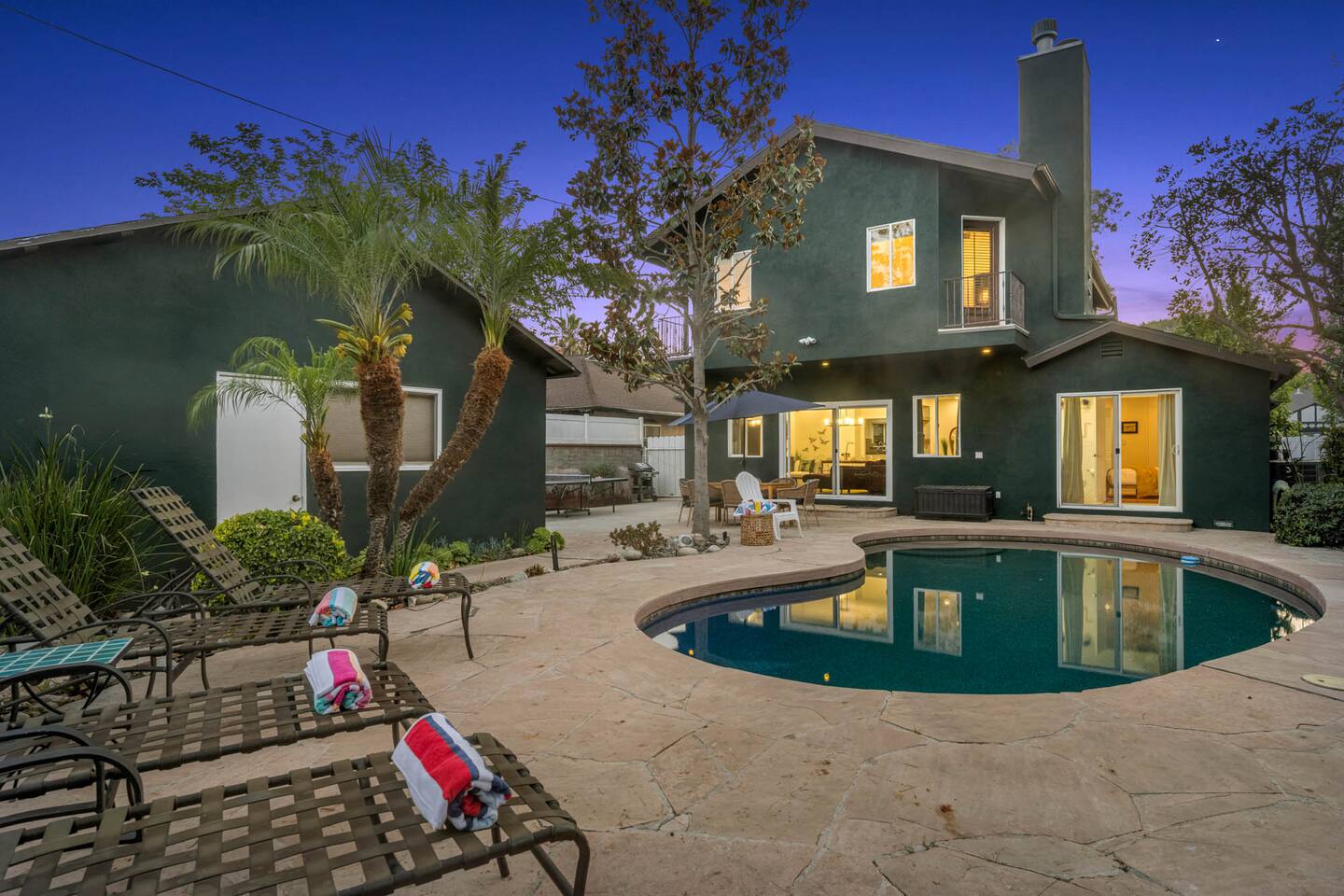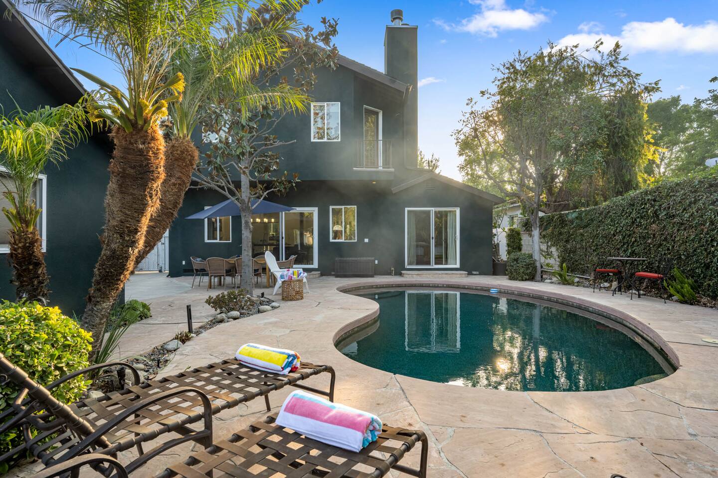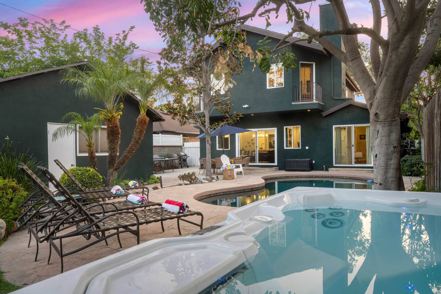 Bathrooms -Master upstairs has attached bathroom -Second bedroom upstairs with two beds in it has attached bathroom -Downstairs first bedroom does not have attached bathroom however there is the main bathroom near by -Last bedroom, has attached bathroom leading out to the backyard -Guest House has an attached bathroom Step inside to discover a meticulously designed interior. The home is adorned with brand-new, stunning furniture and appliances throughout, creating a modern yet comfortable ambiance. The living spaces are generously sized, including a stunning living room and a gorgeous kitchen, ideal for both everyday living and hosting gatherings. Outside, the property truly shines. Enjoy the California sunshine with a refreshing pool and a relaxing hot tub, perfect for poolside fun. A dedicated BBQ area makes outdoor entertaining a breeze. The property also offers ample parking with a three-car driveway and convenient street parking. Please note that the garage is not available for use. This exceptional property offers a rare opportunity to experience luxurious living in a prime Van Nuys location. Shopping and Dining: Explore the diverse culinary scene and retail options along Van Nuys Boulevard and nearby areas. Parks and Recreation: Enjoy outdoor activities at local parks like Lake Balboa Park, which features a beautiful lake, walking paths, and recreational facilities. Entertainment: Experience live performances at the Valley Performing Arts Center or catch a movie at one of the local theaters. Easy Commute: Benefit from convenient access to major freeways, making it easy to travel to other parts of Los Angeles.