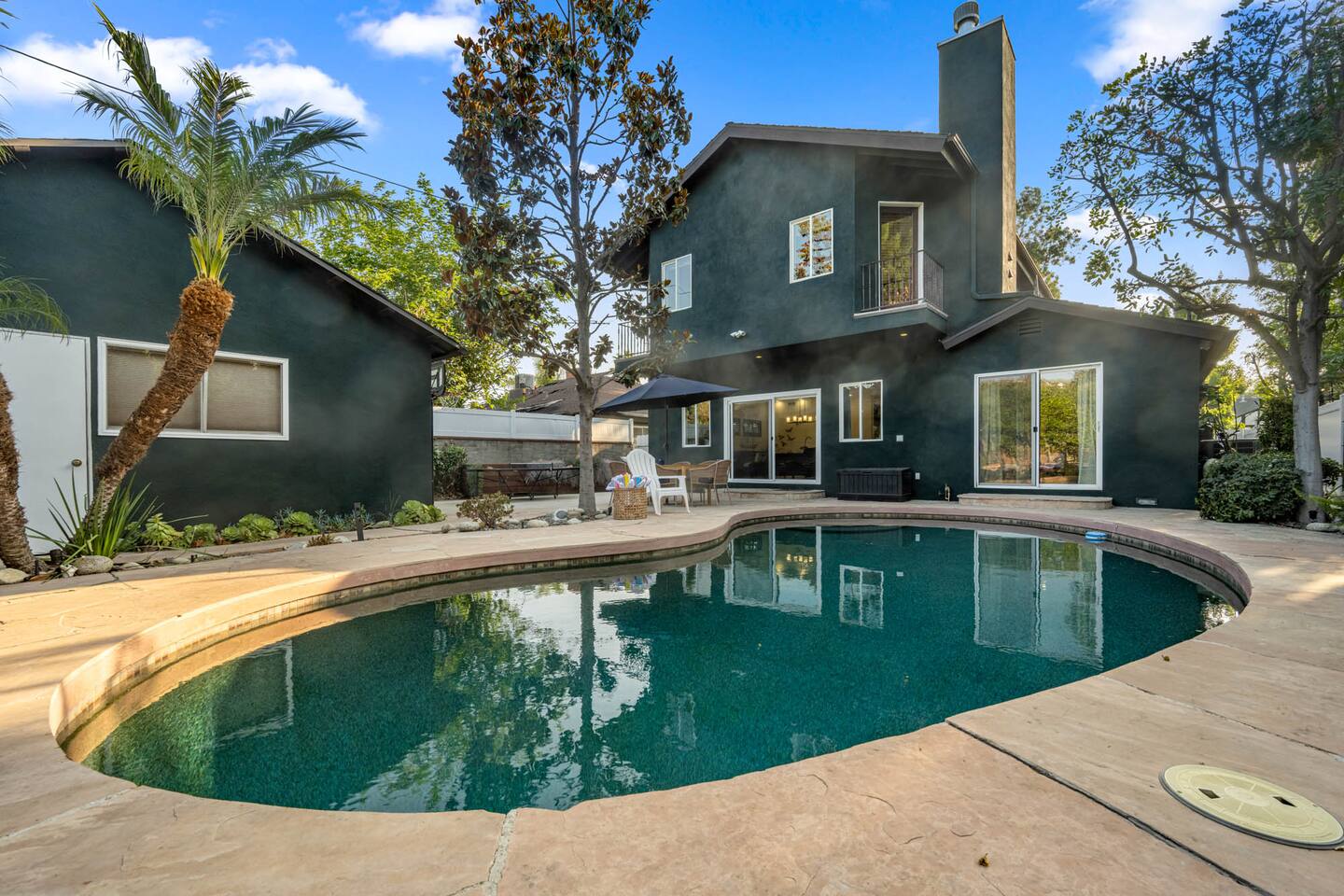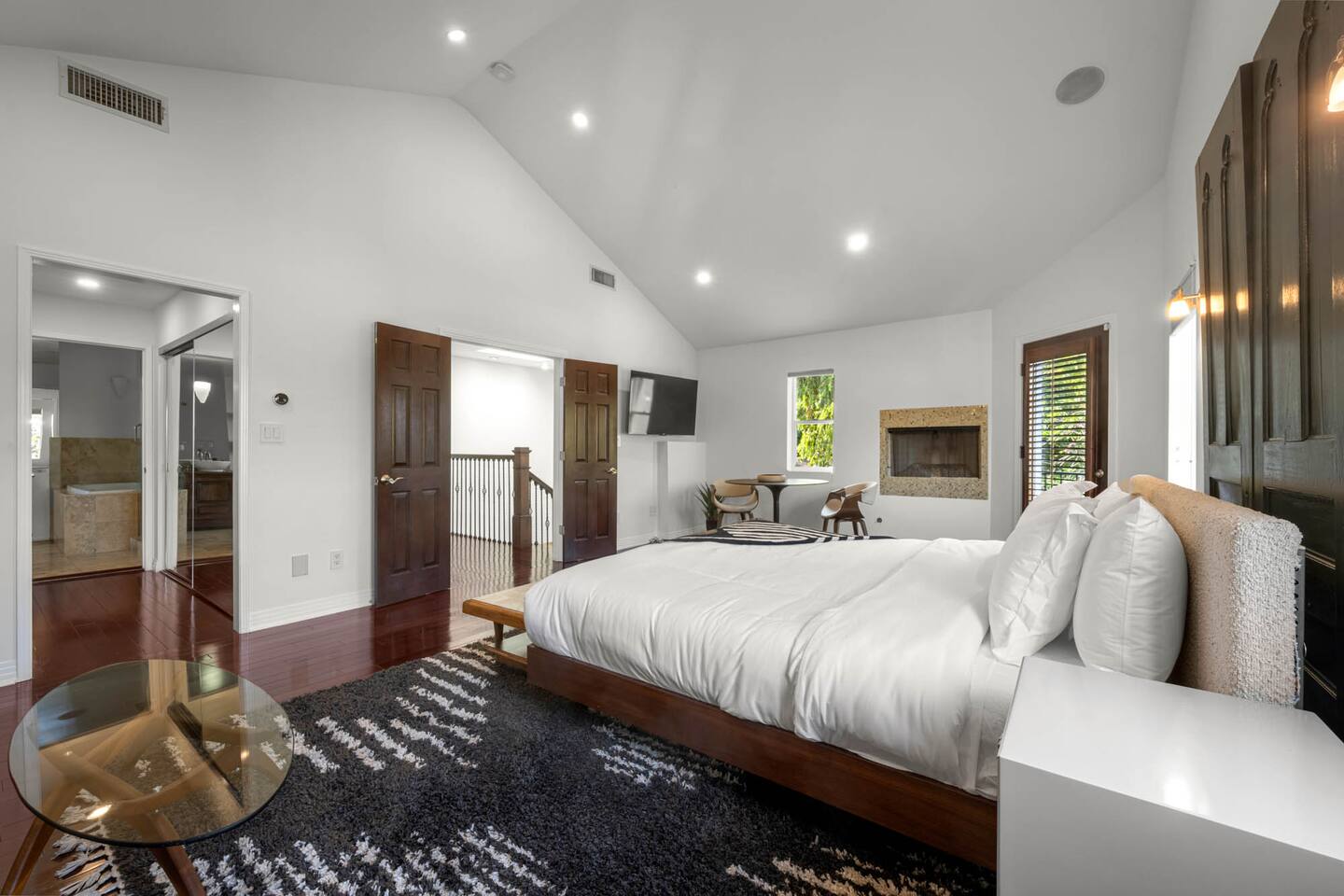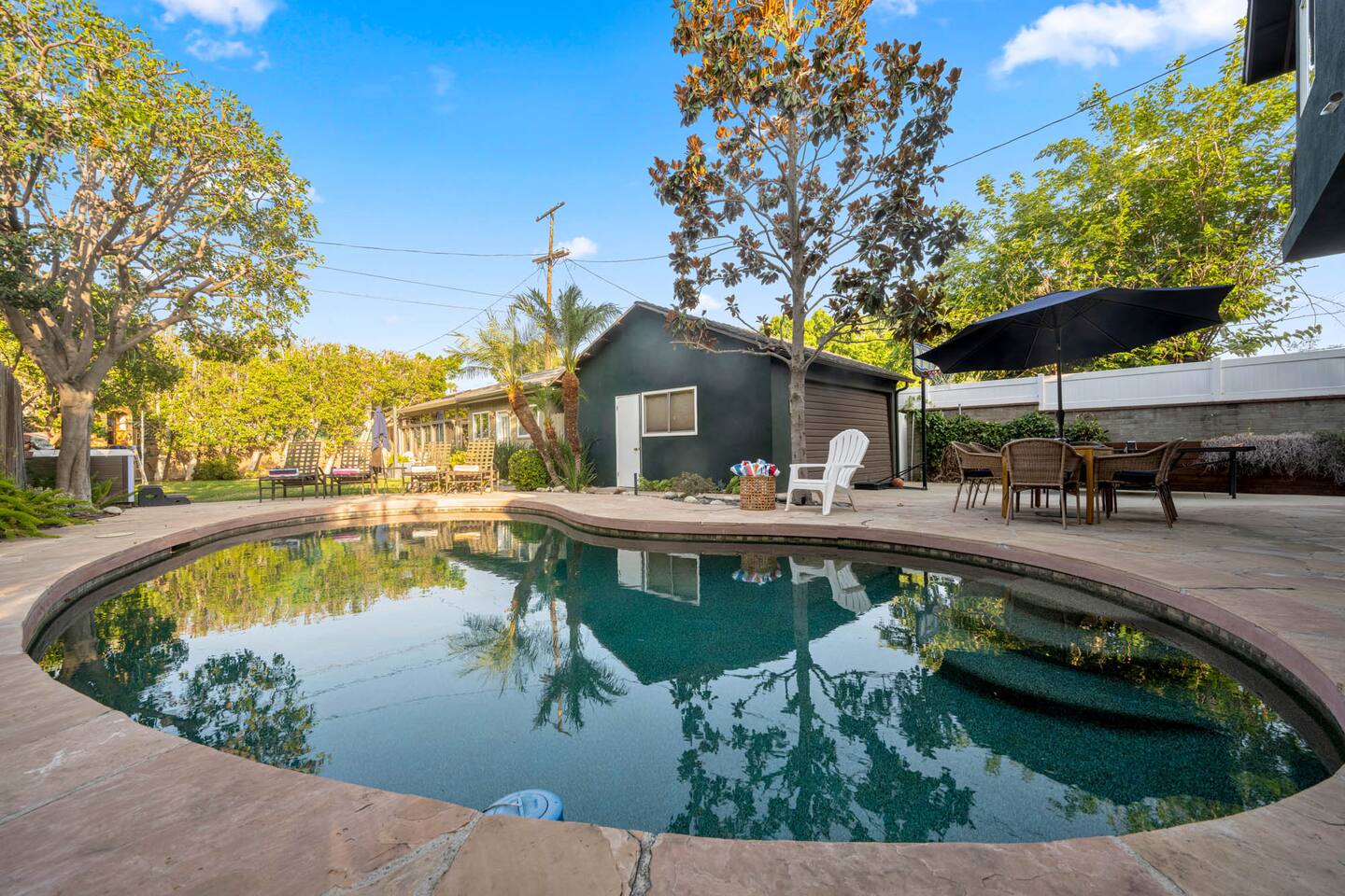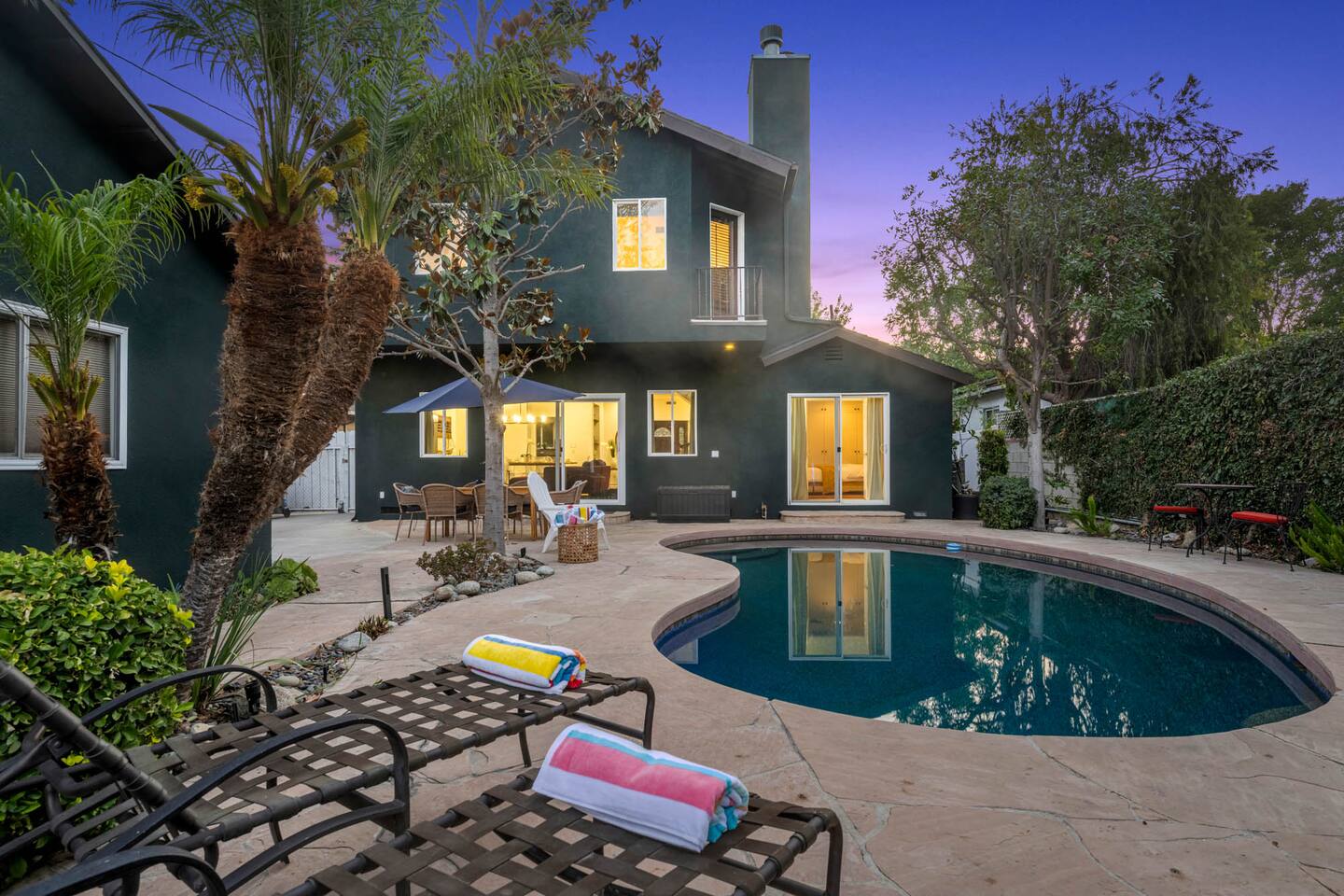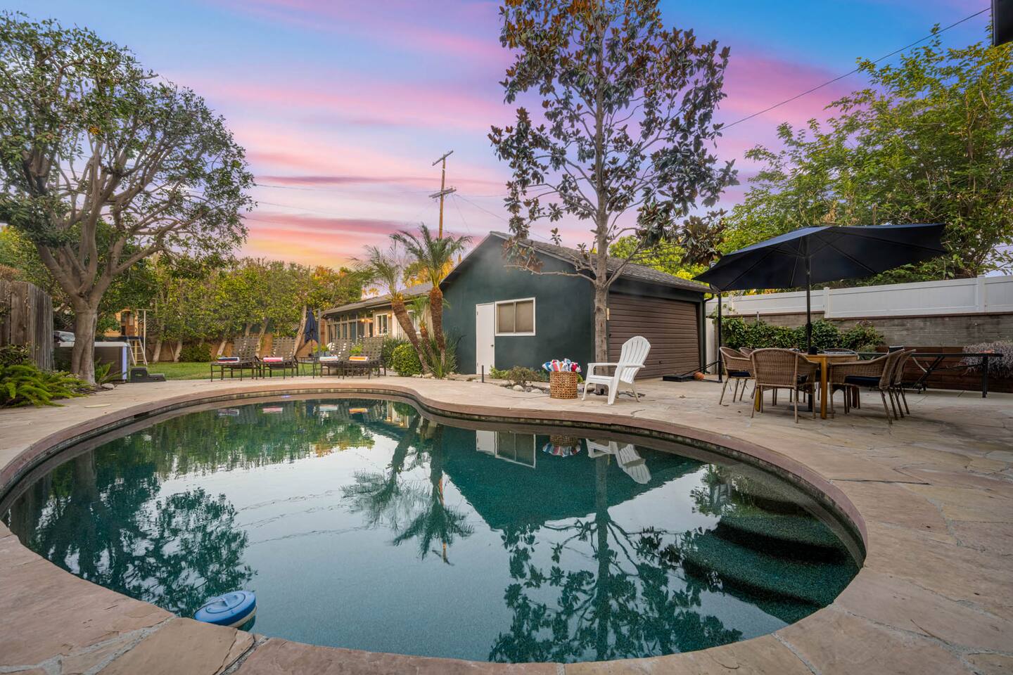 Bathrooms -Master upstairs has attached bathroom -Second bedroom upstairs with two beds in it has attached bathroom -Downstairs first bedroom does not have attached bathroom however there is the main bathroom near by -Last bedroom, has attached bathroom leading out to the backyard -Guest House has an attached bathroom Step inside to discover a meticulously designed interior. The home is adorned with brand-new, stunning furniture and appliances throughout, creating a modern yet comfortable ambiance. The living spaces are generously sized, including a stunning living room and a gorgeous kitchen, ideal for both everyday living and hosting gatherings. Outside, the property truly shines. Enjoy the California sunshine with a refreshing pool and a relaxing hot tub, perfect for poolside fun. A dedicated BBQ area makes outdoor entertaining a breeze. The property also offers ample parking with a three-car driveway and convenient street parking. Please note that the garage is not available for use. This exceptional property offers a rare opportunity to experience luxurious living in a prime Van Nuys location. Shopping and Dining: Explore the diverse culinary scene and retail options along Van Nuys Boulevard and nearby areas. Parks and Recreation: Enjoy outdoor activities at local parks like Lake Balboa Park, which features a beautiful lake, walking paths, and recreational facilities. Entertainment: Experience live performances at the Valley Performing Arts Center or catch a movie at one of the local theaters. Easy Commute: Benefit from convenient access to major freeways, making it easy to travel to other parts of Los Angeles.