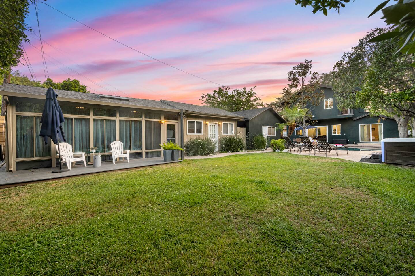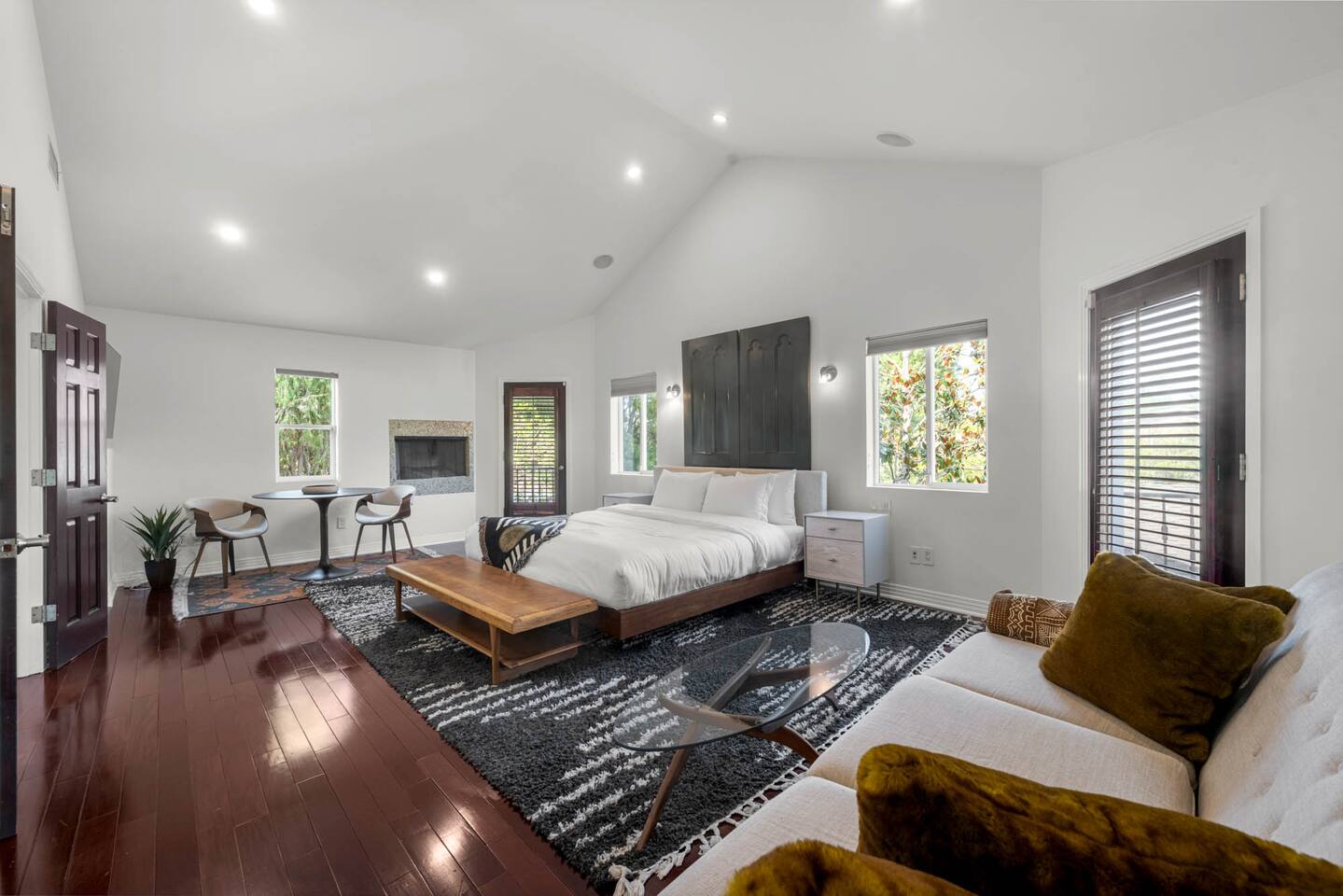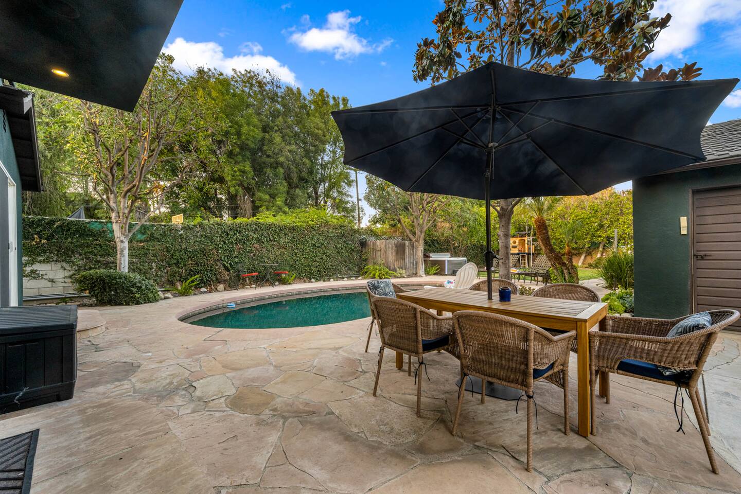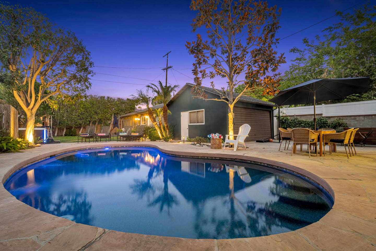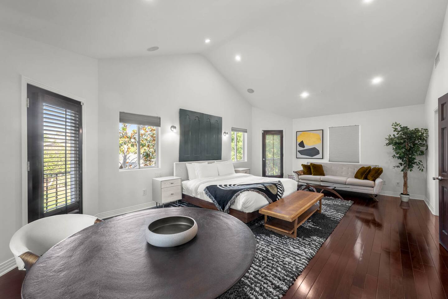 Bathrooms -Master upstairs has attached bathroom -Second bedroom upstairs with two beds in it has attached bathroom -Downstairs first bedroom does not have attached bathroom however there is the main bathroom near by -Last bedroom, has attached bathroom leading out to the backyard -Guest House has an attached bathroom Step inside to discover a meticulously designed interior. The home is adorned with brand-new, stunning furniture and appliances throughout, creating a modern yet comfortable ambiance. The living spaces are generously sized, including a stunning living room and a gorgeous kitchen, ideal for both everyday living and hosting gatherings. Outside, the property truly shines. Enjoy the California sunshine with a refreshing pool and a relaxing hot tub, perfect for poolside fun. A dedicated BBQ area makes outdoor entertaining a breeze. The property also offers ample parking with a three-car driveway and convenient street parking. Please note that the garage is not available for use. This exceptional property offers a rare opportunity to experience luxurious living in a prime Van Nuys location. Shopping and Dining: Explore the diverse culinary scene and retail options along Van Nuys Boulevard and nearby areas. Parks and Recreation: Enjoy outdoor activities at local parks like Lake Balboa Park, which features a beautiful lake, walking paths, and recreational facilities. Entertainment: Experience live performances at the Valley Performing Arts Center or catch a movie at one of the local theaters. Easy Commute: Benefit from convenient access to major freeways, making it easy to travel to other parts of Los Angeles.