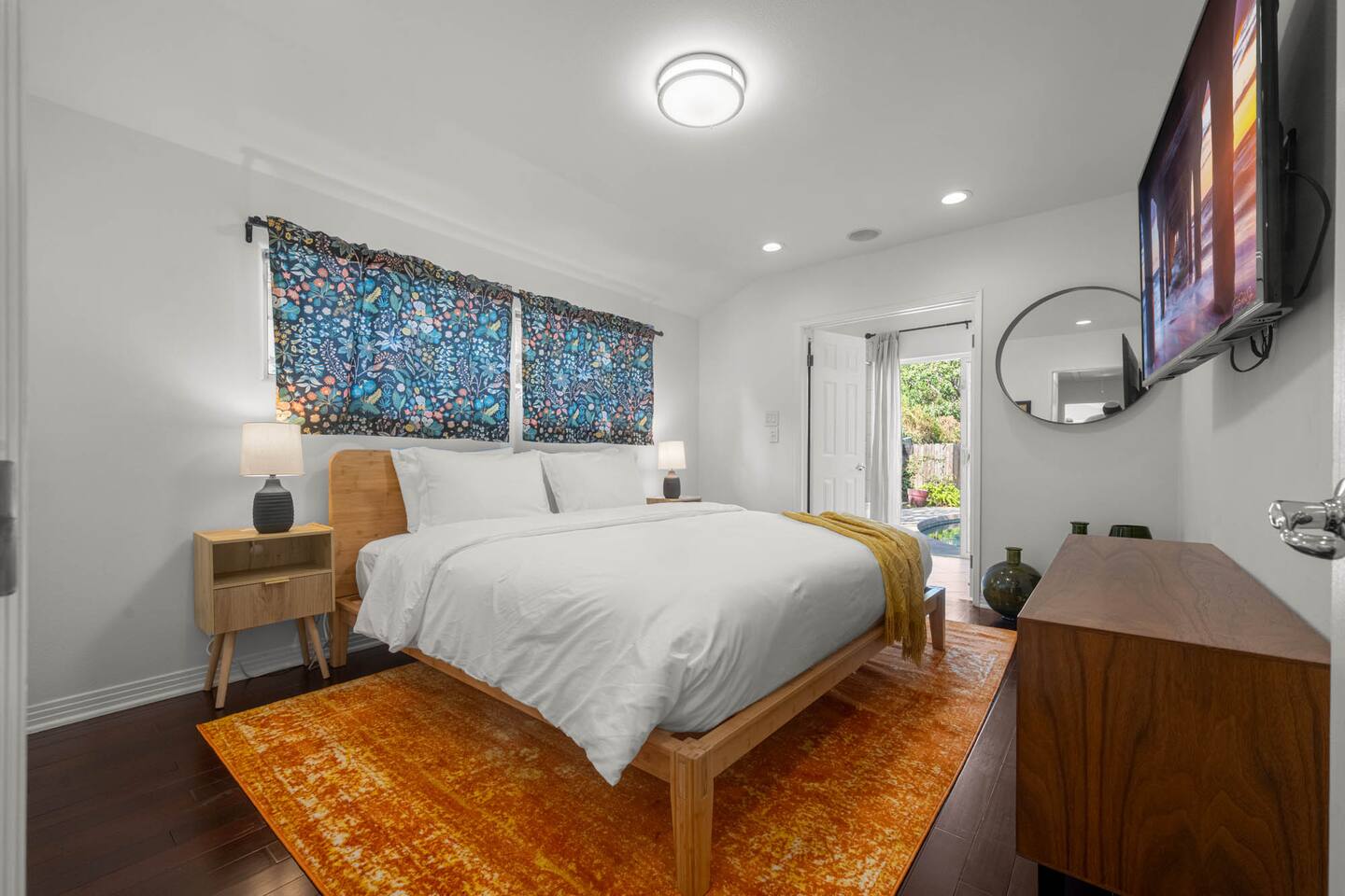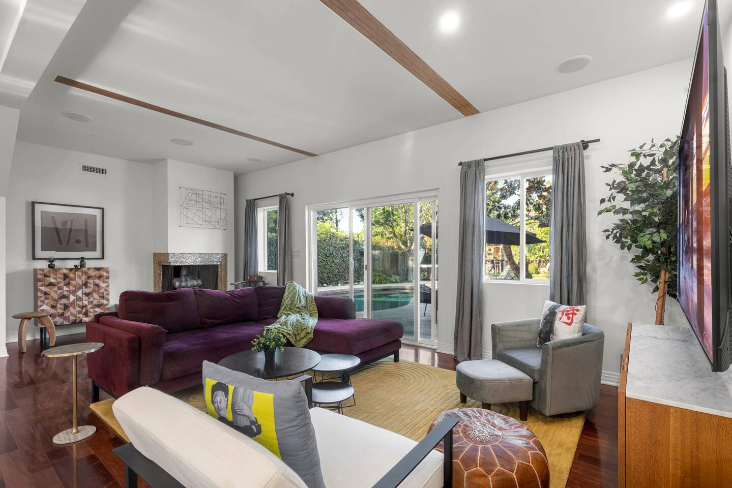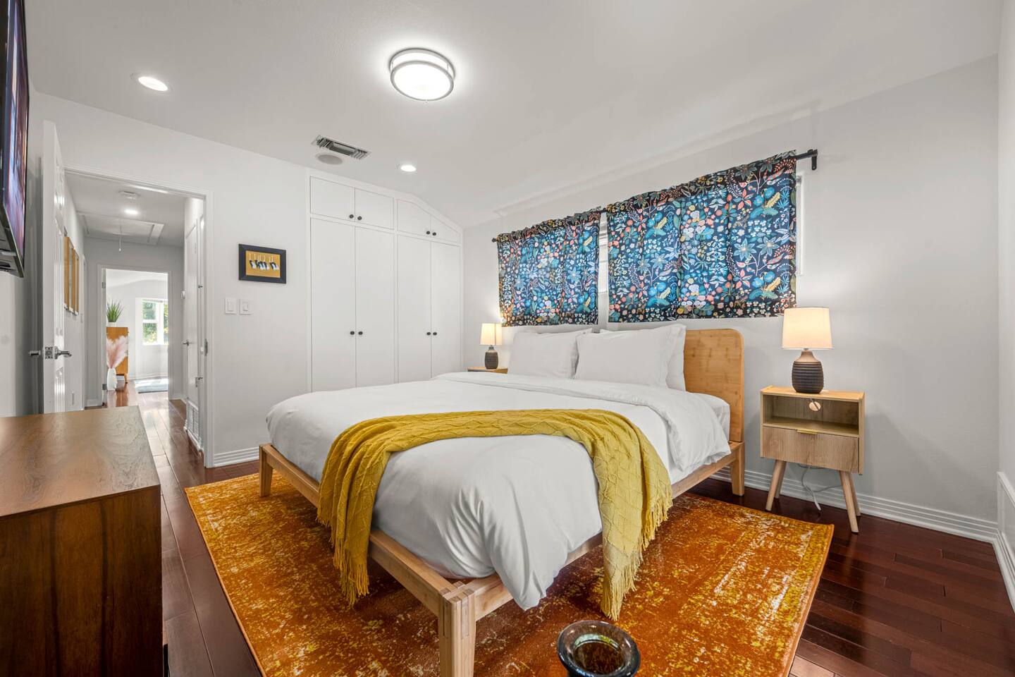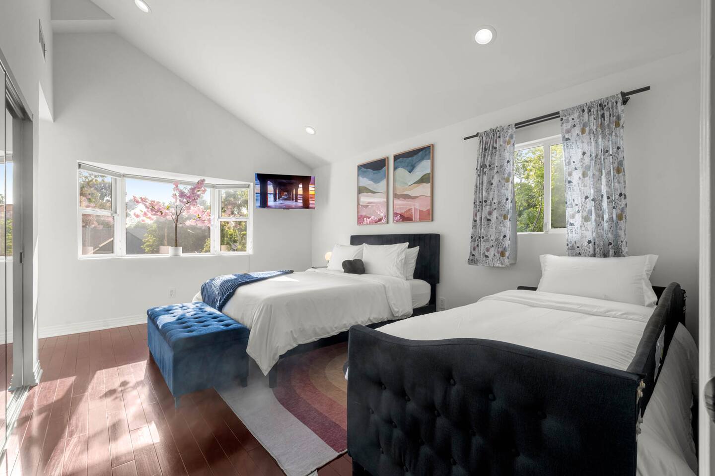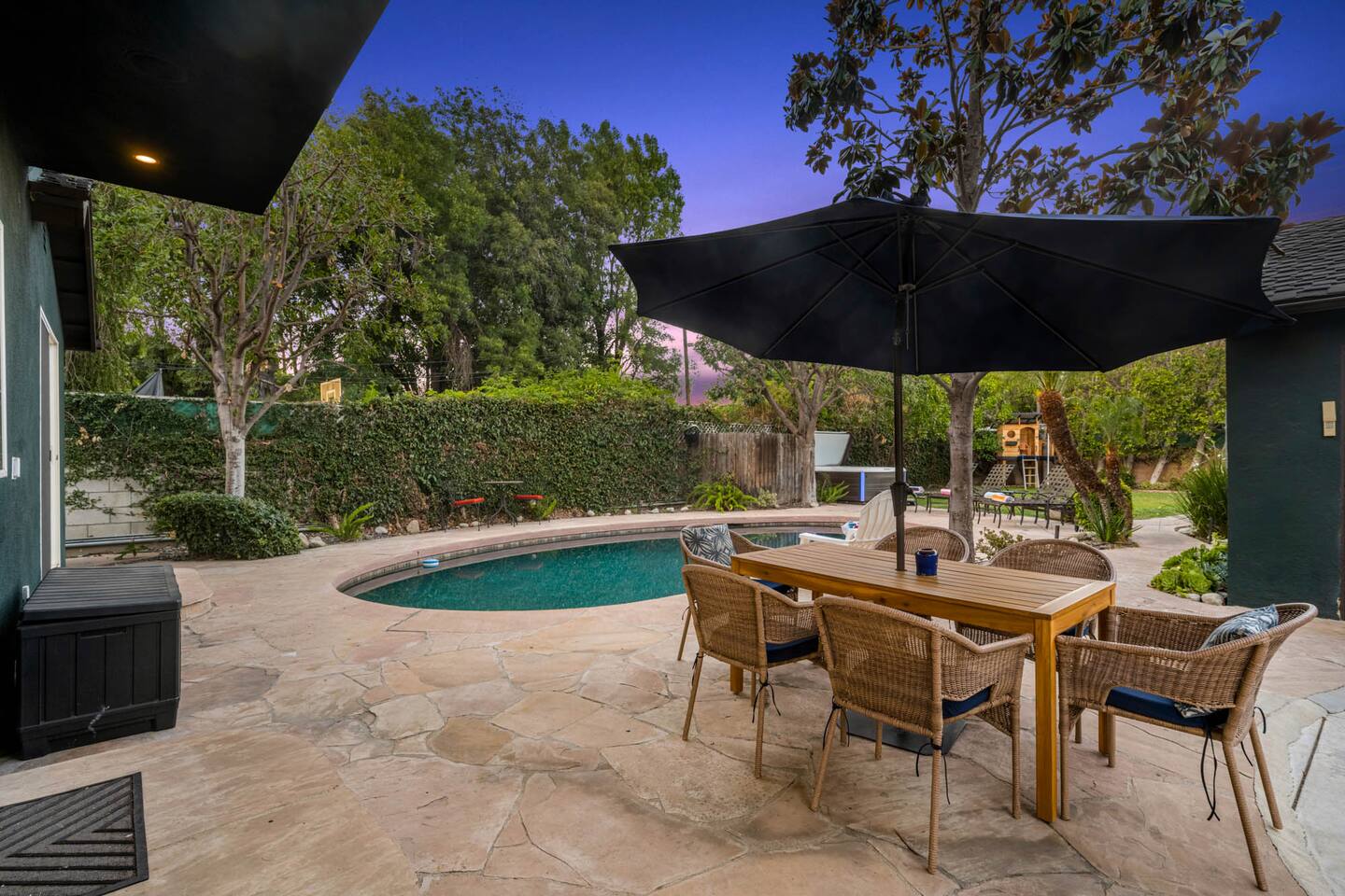 Bathrooms -Master upstairs has attached bathroom -Second bedroom upstairs with two beds in it has attached bathroom -Downstairs first bedroom does not have attached bathroom however there is the main bathroom near by -Last bedroom, has attached bathroom leading out to the backyard -Guest House has an attached bathroom Step inside to discover a meticulously designed interior. The home is adorned with brand-new, stunning furniture and appliances throughout, creating a modern yet comfortable ambiance. The living spaces are generously sized, including a stunning living room and a gorgeous kitchen, ideal for both everyday living and hosting gatherings. Outside, the property truly shines. Enjoy the California sunshine with a refreshing pool and a relaxing hot tub, perfect for poolside fun. A dedicated BBQ area makes outdoor entertaining a breeze. The property also offers ample parking with a three-car driveway and convenient street parking. Please note that the garage is not available for use. This exceptional property offers a rare opportunity to experience luxurious living in a prime Van Nuys location. Shopping and Dining: Explore the diverse culinary scene and retail options along Van Nuys Boulevard and nearby areas. Parks and Recreation: Enjoy outdoor activities at local parks like Lake Balboa Park, which features a beautiful lake, walking paths, and recreational facilities. Entertainment: Experience live performances at the Valley Performing Arts Center or catch a movie at one of the local theaters. Easy Commute: Benefit from convenient access to major freeways, making it easy to travel to other parts of Los Angeles.