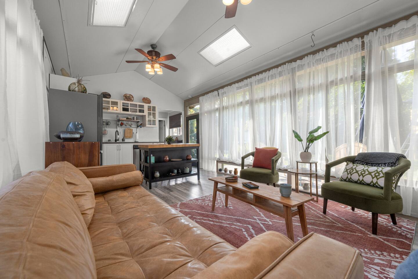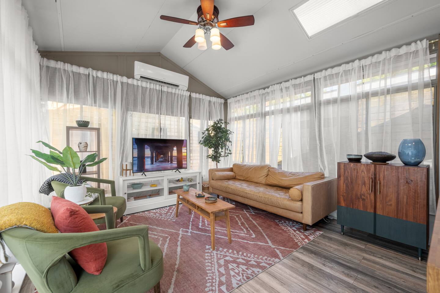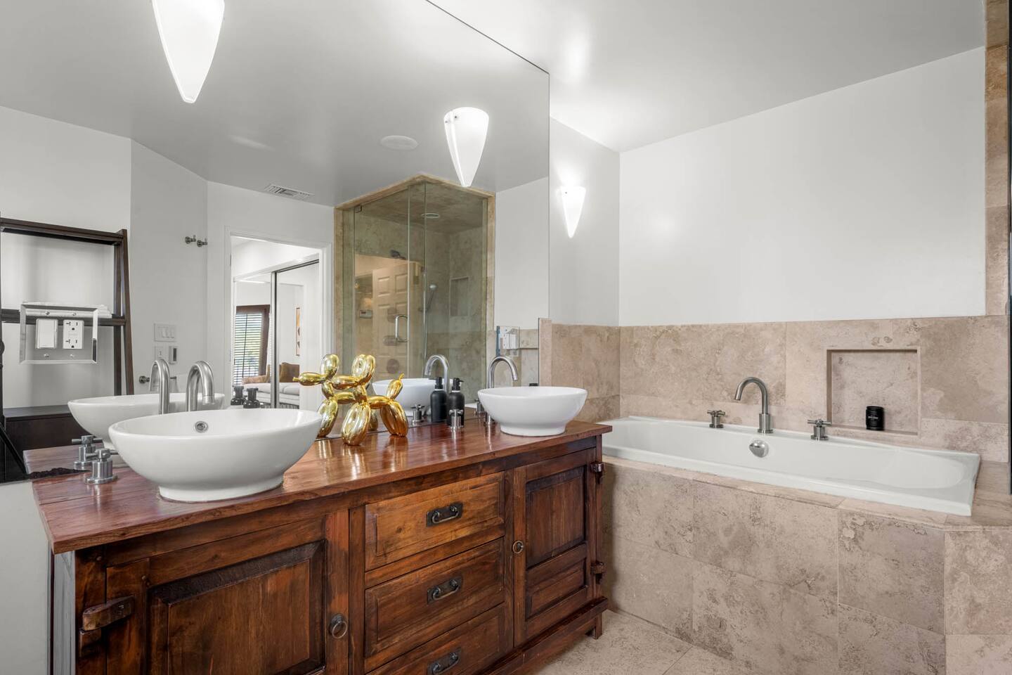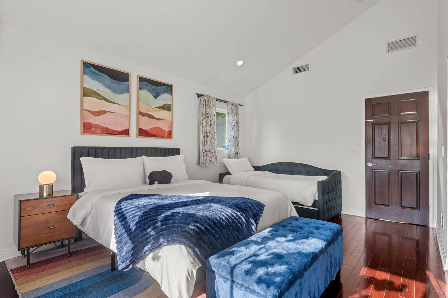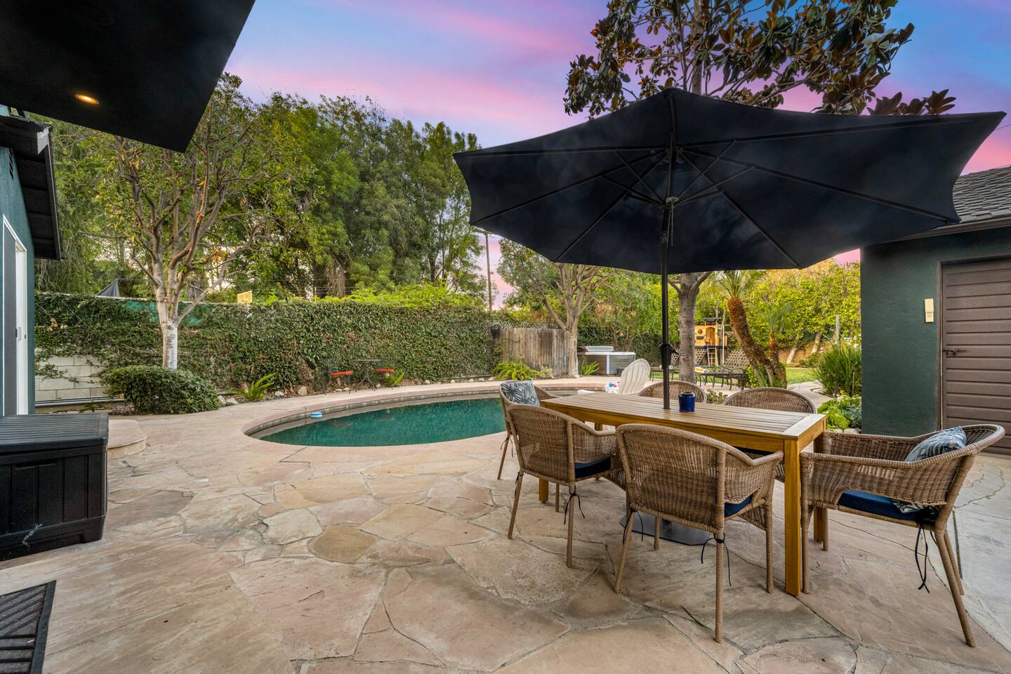 Bathrooms -Master upstairs has attached bathroom -Second bedroom upstairs with two beds in it has attached bathroom -Downstairs first bedroom does not have attached bathroom however there is the main bathroom near by -Last bedroom, has attached bathroom leading out to the backyard -Guest House has an attached bathroom Step inside to discover a meticulously designed interior. The home is adorned with brand-new, stunning furniture and appliances throughout, creating a modern yet comfortable ambiance. The living spaces are generously sized, including a stunning living room and a gorgeous kitchen, ideal for both everyday living and hosting gatherings. Outside, the property truly shines. Enjoy the California sunshine with a refreshing pool and a relaxing hot tub, perfect for poolside fun. A dedicated BBQ area makes outdoor entertaining a breeze. The property also offers ample parking with a three-car driveway and convenient street parking. Please note that the garage is not available for use. This exceptional property offers a rare opportunity to experience luxurious living in a prime Van Nuys location. Shopping and Dining: Explore the diverse culinary scene and retail options along Van Nuys Boulevard and nearby areas. Parks and Recreation: Enjoy outdoor activities at local parks like Lake Balboa Park, which features a beautiful lake, walking paths, and recreational facilities. Entertainment: Experience live performances at the Valley Performing Arts Center or catch a movie at one of the local theaters. Easy Commute: Benefit from convenient access to major freeways, making it easy to travel to other parts of Los Angeles.