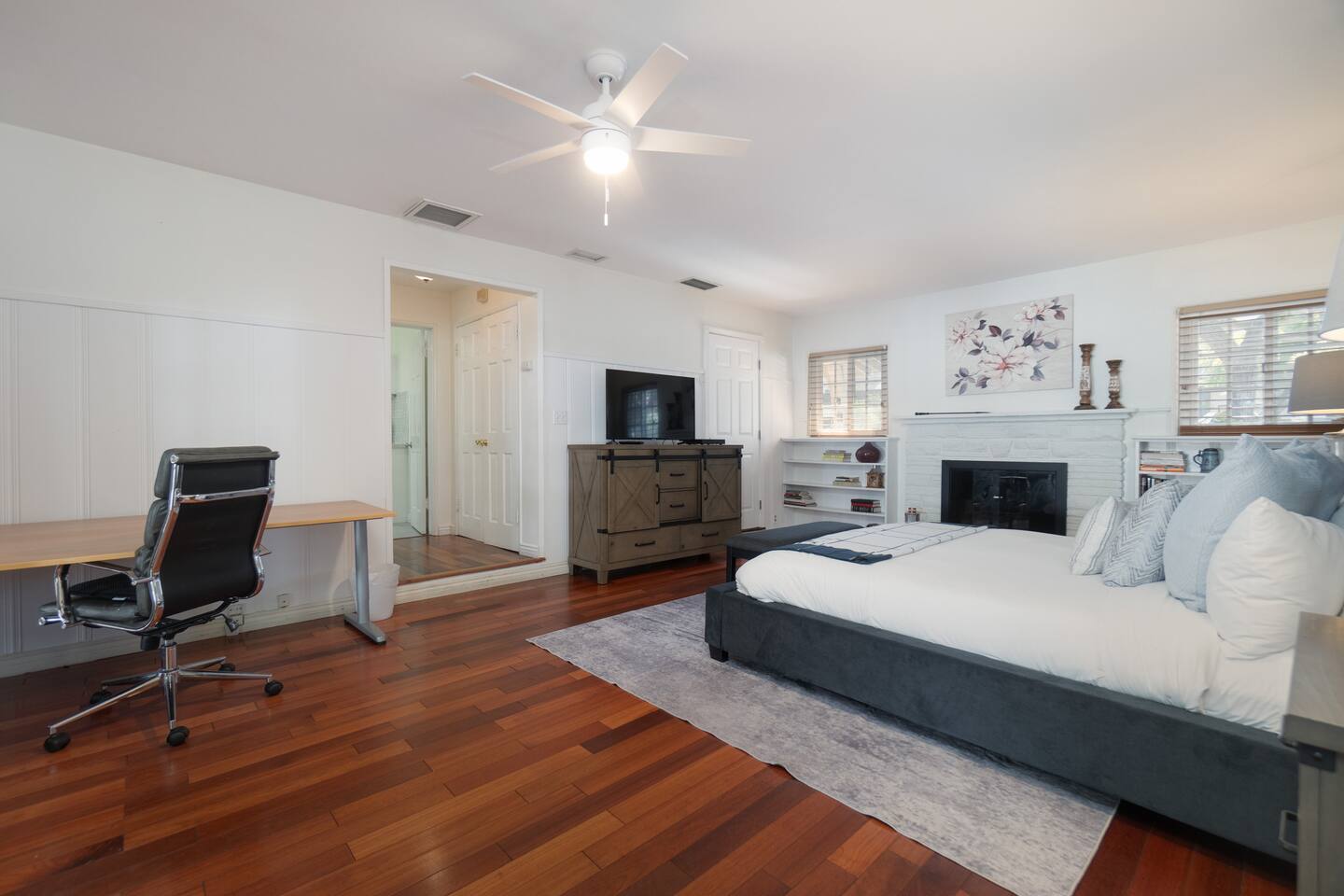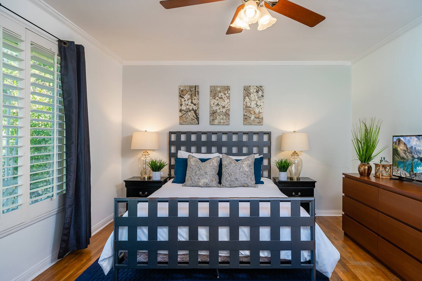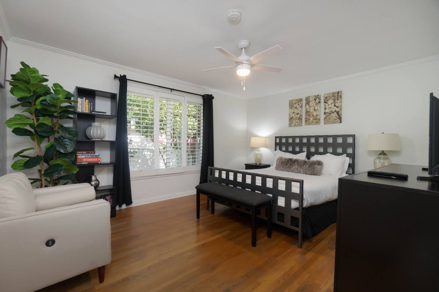 Enjoy relaxing in this stunning 4-bedroom home with newer furniture, Tesla charger, and located close to the best of what L.A offers. The Primary retreat has a beautiful new bedroom set, smart TV, fireplace, desk, and an attached bathroom. The additional three bedrooms are also beautifully designed with new furniture and large beds. This is a very comfortable family home in a really wonderful neighborhood. I highly recommend this listing. Near Universal Studios and to Freeway access.