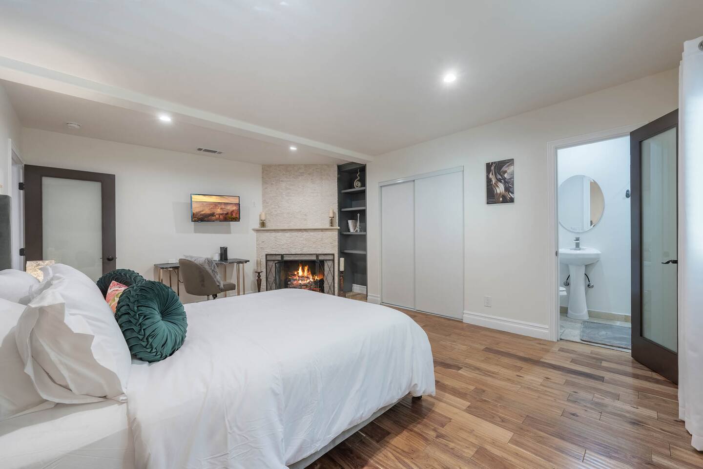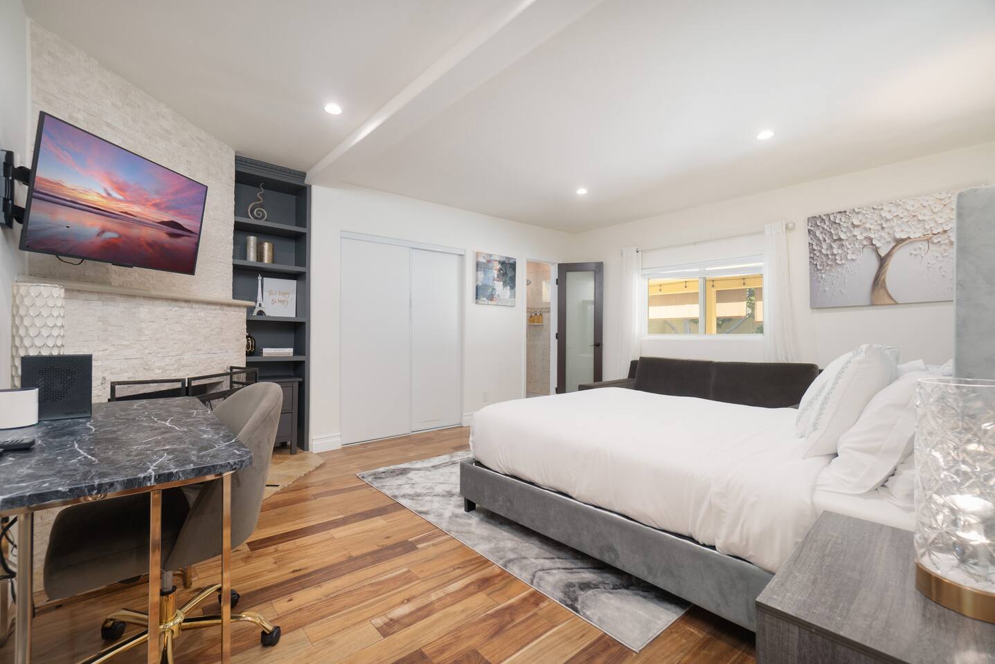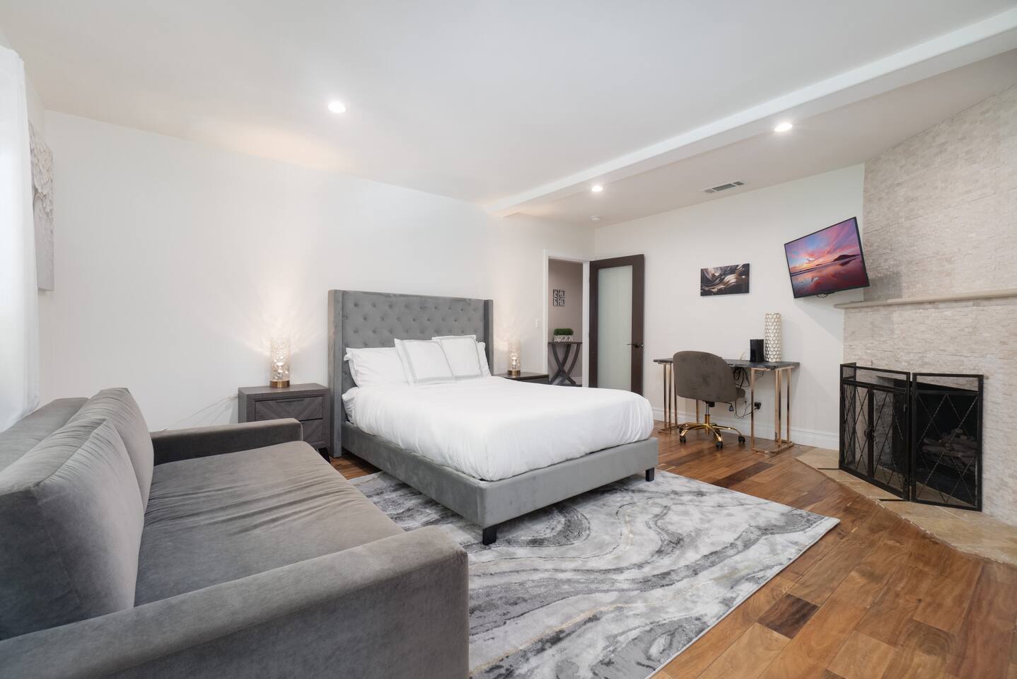 Welcome to your Encino oasis! A guest favorite 🤩. This exquisite home has been meticulously updated throughout, offering a perfect blend of modern luxury and a real grass yard. This fully gated property, has a gourmet kitchen, stunning dining room and a nice large open living concept. Overall, a large comfortable quality home which is more beautiful in person. Gated with long driveway and detached garage. Nice location.