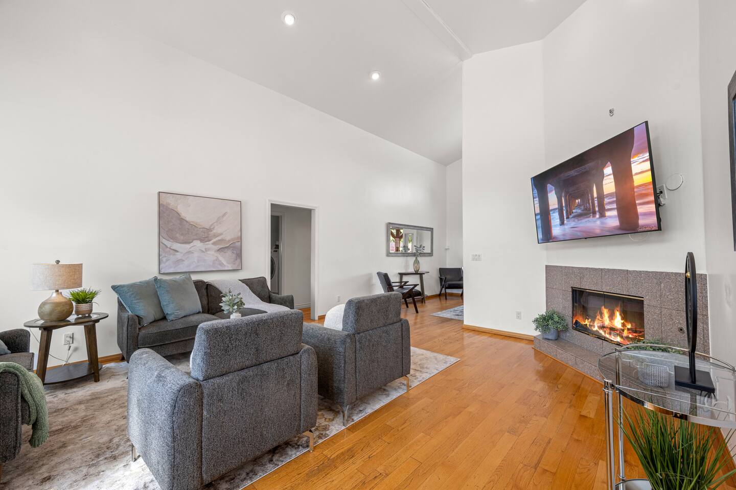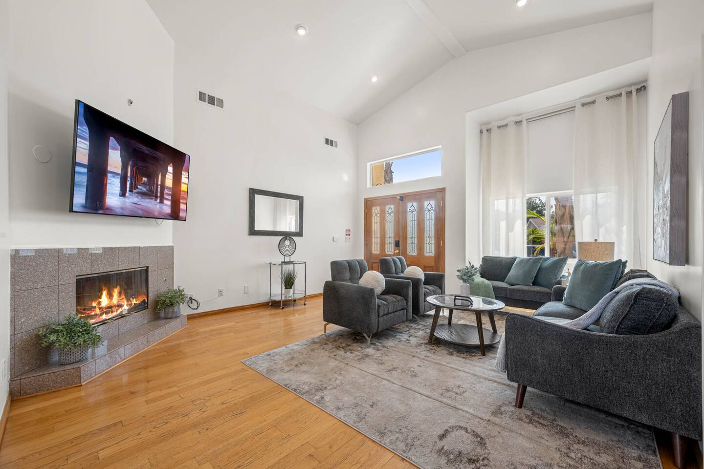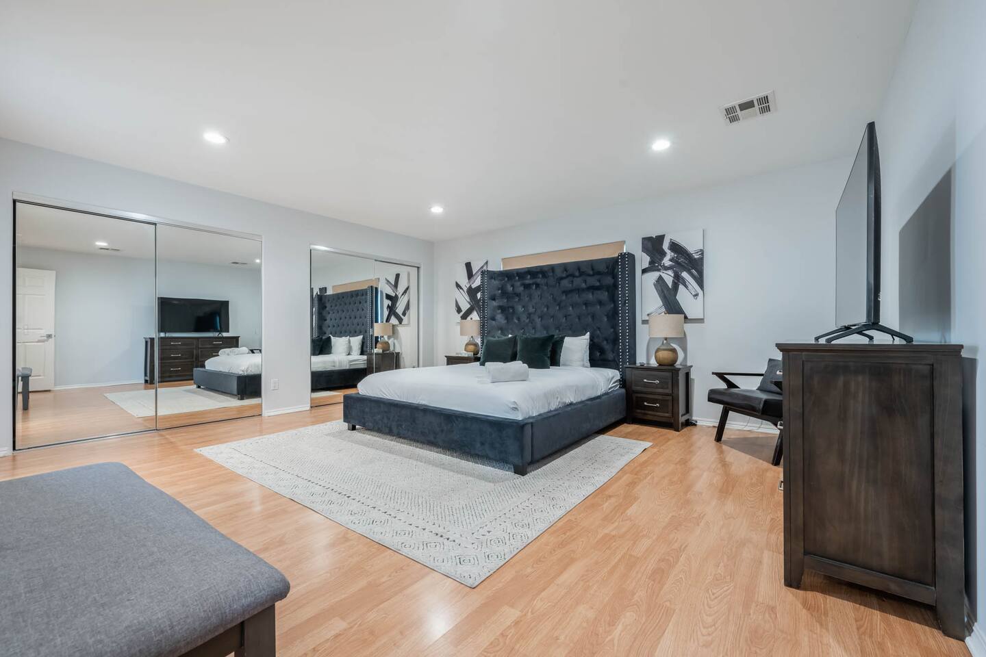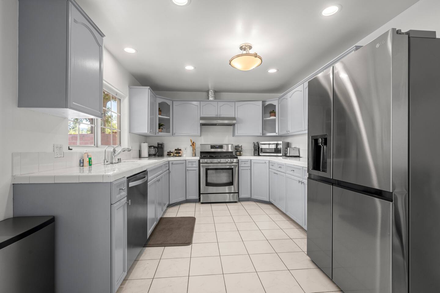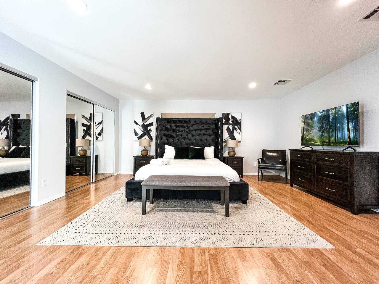 Step inside to soaring vaulted ceilings, abundant natural light, and brand-new living and dining room furniture that create a fresh, welcoming atmosphere. The home features two luxurious primary suites, each with king beds and remodeled en-suite bathrooms, offering comfort and privacy for families or groups traveling together. Outside, enjoy a sparkling heated pool and spa, perfect for relaxing or entertaining under the California sun. Fire up the BBQ grill for al fresco dining and unwind in the beautifully maintained outdoor space. Every detail has been thoughtfully designed for your comfort - from the stunning bathrooms to the pristine cleanliness throughout. Whether you're here for business or leisure, this stylish and happy space is the perfect Tarzana getaway. Offers both driveway and street parking for added convenience.