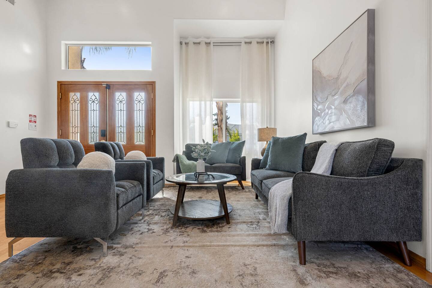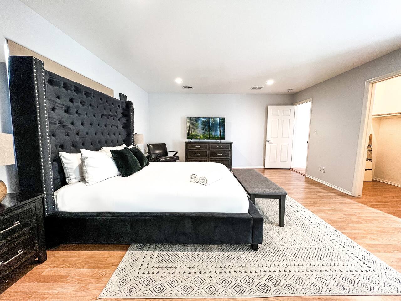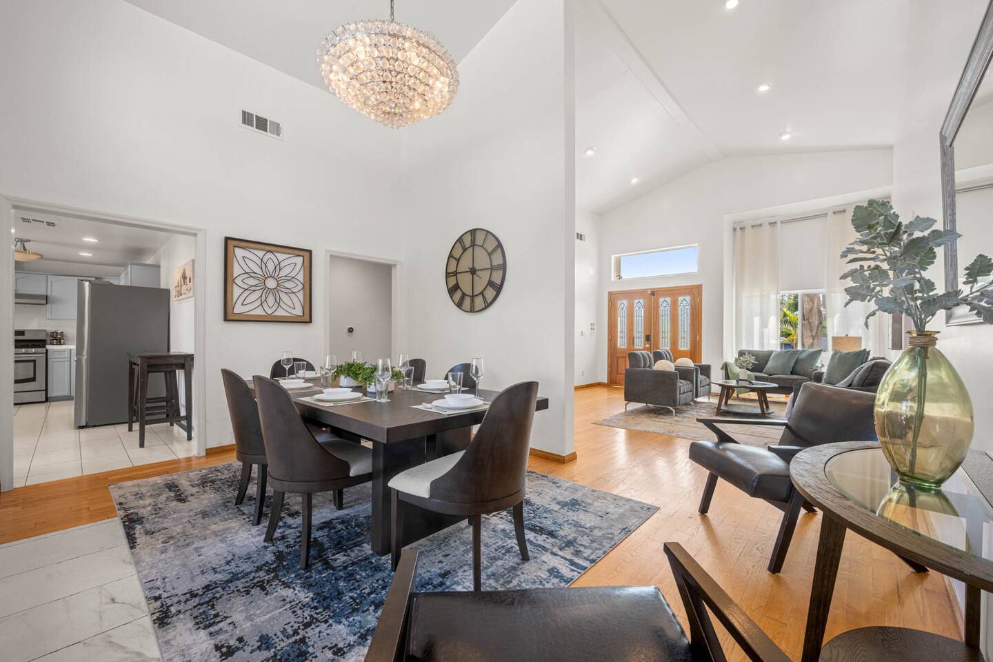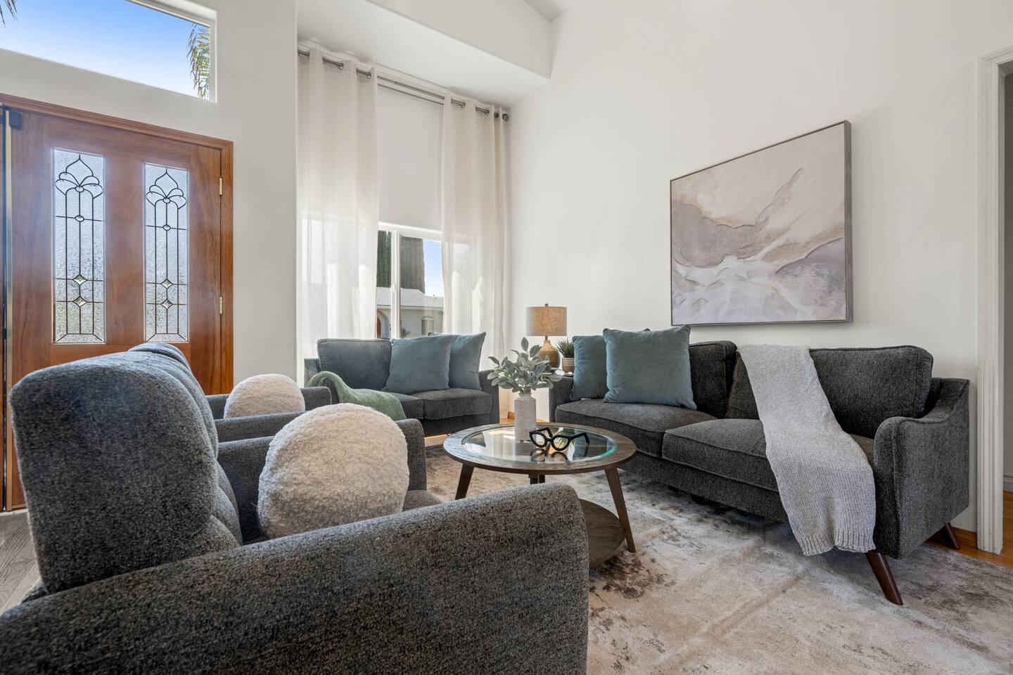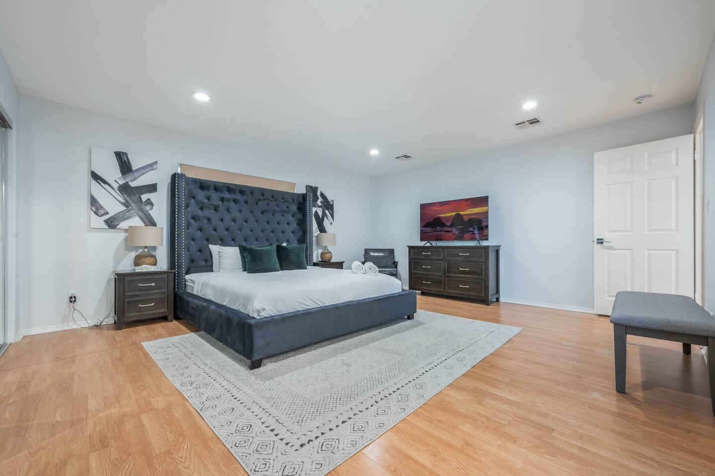 Step inside to soaring vaulted ceilings, abundant natural light, and brand-new living and dining room furniture that create a fresh, welcoming atmosphere. The home features two luxurious primary suites, each with king beds and remodeled en-suite bathrooms, offering comfort and privacy for families or groups traveling together. Outside, enjoy a sparkling heated pool and spa, perfect for relaxing or entertaining under the California sun. Fire up the BBQ grill for al fresco dining and unwind in the beautifully maintained outdoor space. Every detail has been thoughtfully designed for your comfort - from the stunning bathrooms to the pristine cleanliness throughout. Whether you're here for business or leisure, this stylish and happy space is the perfect Tarzana getaway. Offers both driveway and street parking for added convenience.